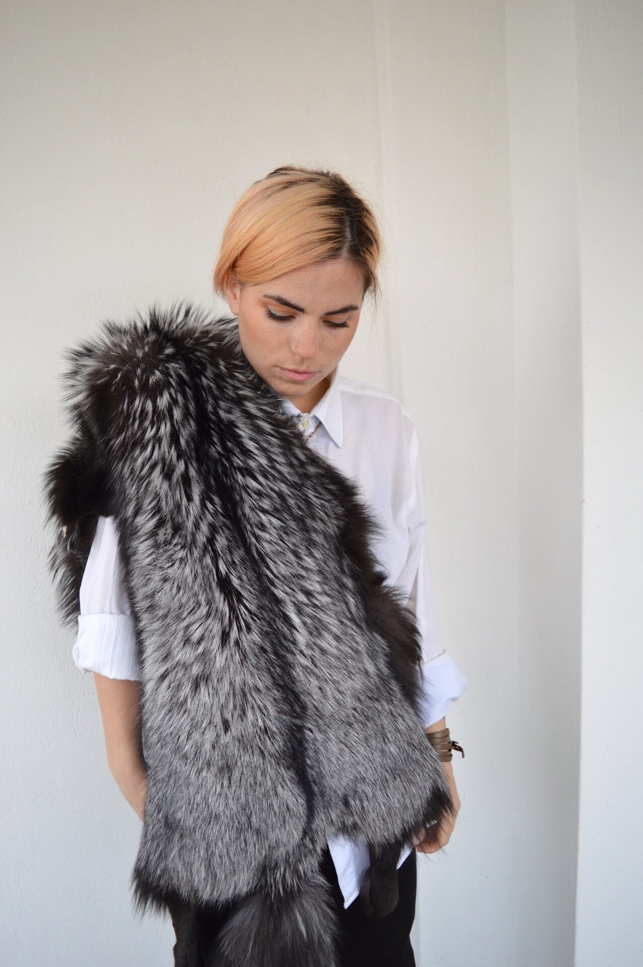 Genuine silver fox fur pelt, super supple and lavish as fur stole or raw material for DIY crafts. silver fox skin, luxury fur gift.