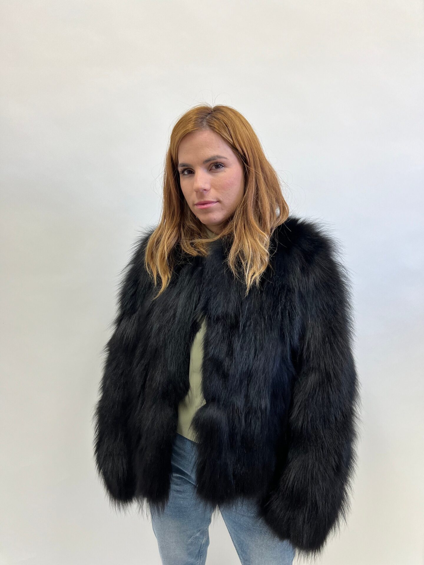 Real black fox fur everyday jacket. Winter fur jacket in genuine fur pelt, super warm and practical affordable luxury fur gift for women.