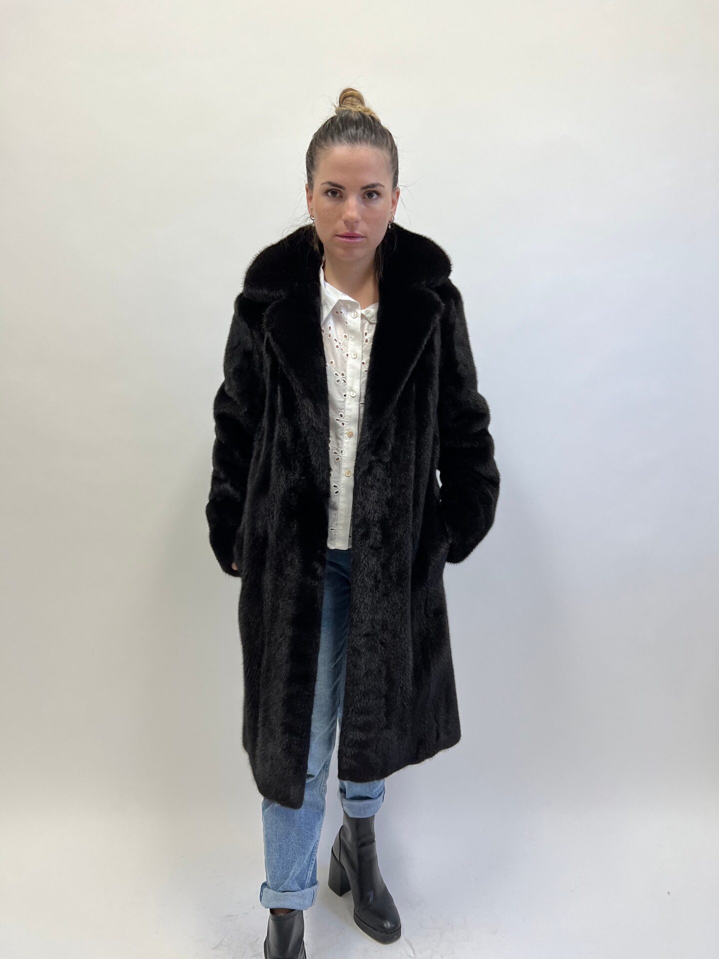 Real black let out straight line fur coat, Saga furs supple male pelts with stand up collar. Stunning Luxury gift for her.