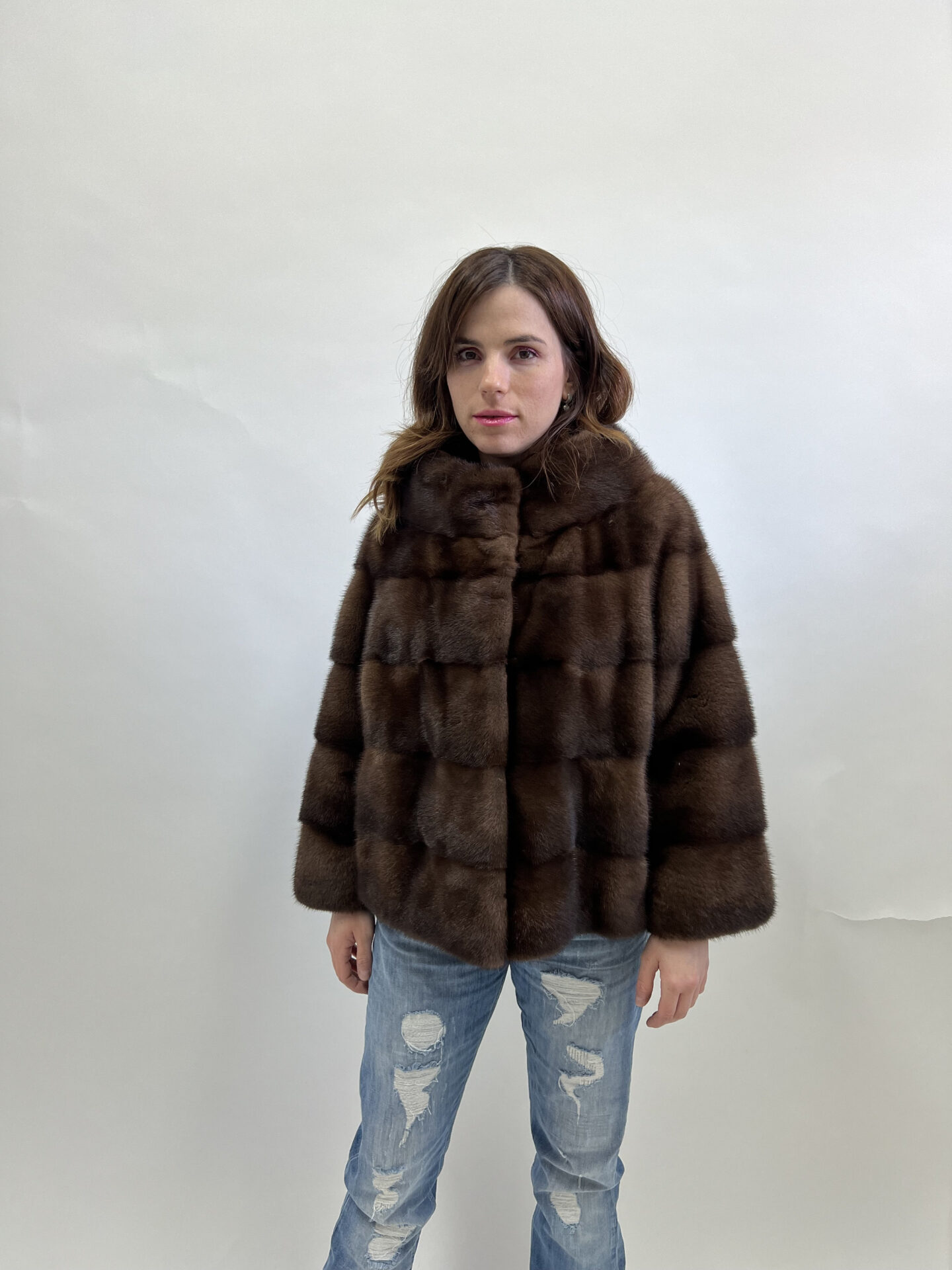 Real brown mink fur horizontal jacket, lavish brown Saga mink fur coat warm and practical Demi buff full skin fur jacket.Luxury fur gift.