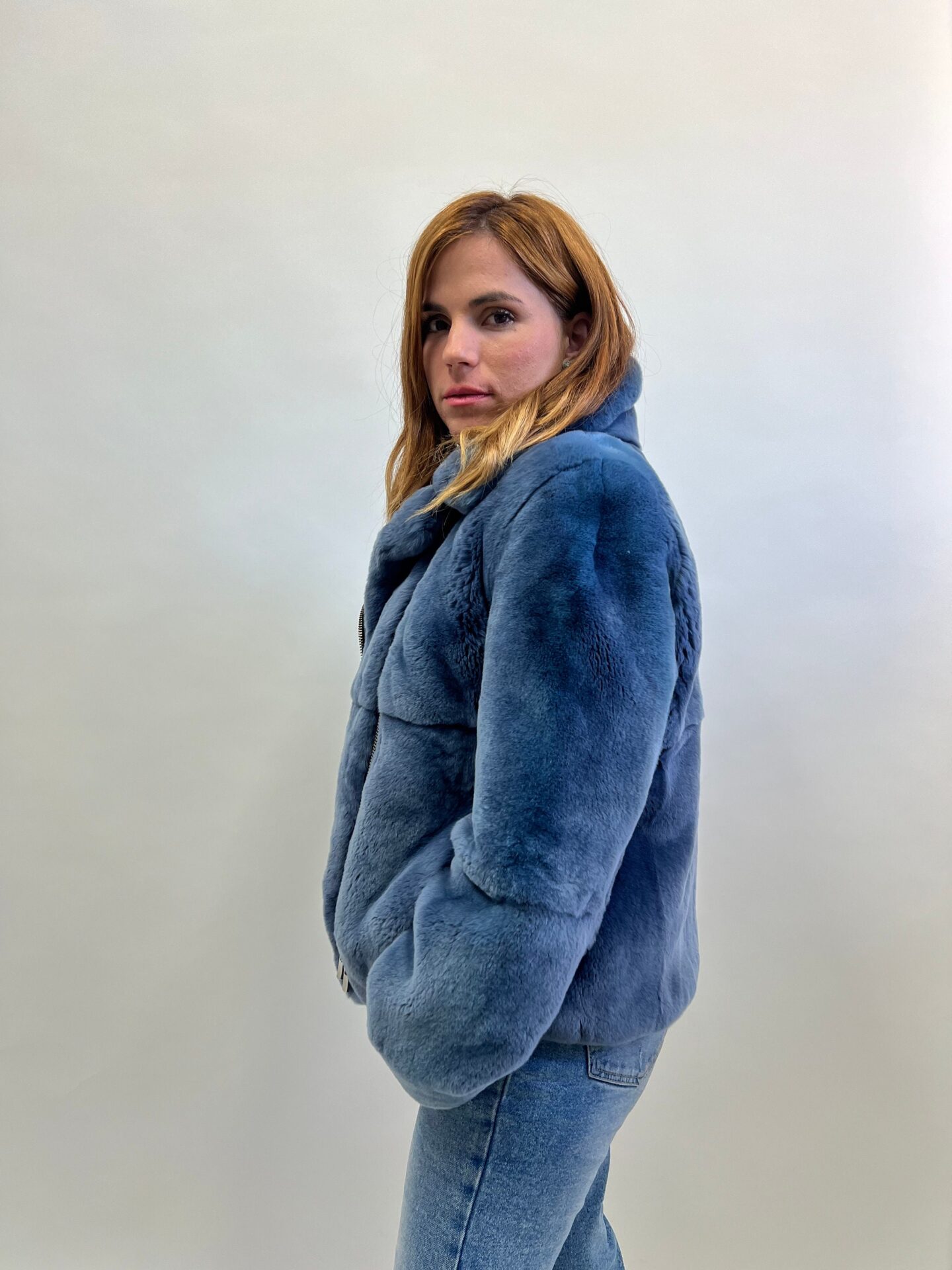 Real jeans biker rex rabbit fur with silver hardware, stylish, soft touch and lightweight fur.Luxury fur gift for women.Real fur in a budget