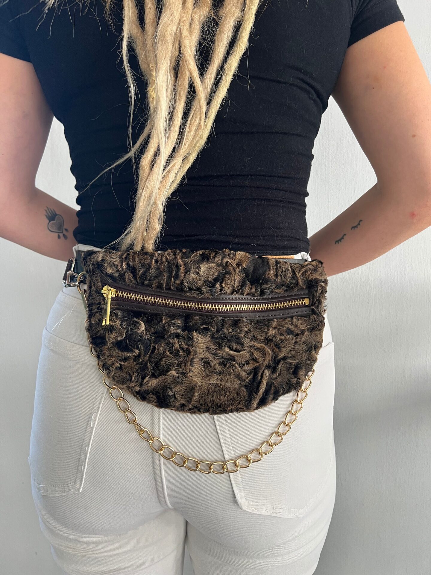 Real lamb fur bumbag in brown rusty with chain and zipper,fanny pack for waist, back or shoulder. Soft and lined fanny fur bag. Luxury gift Soft and lined fanny mink fur bag.