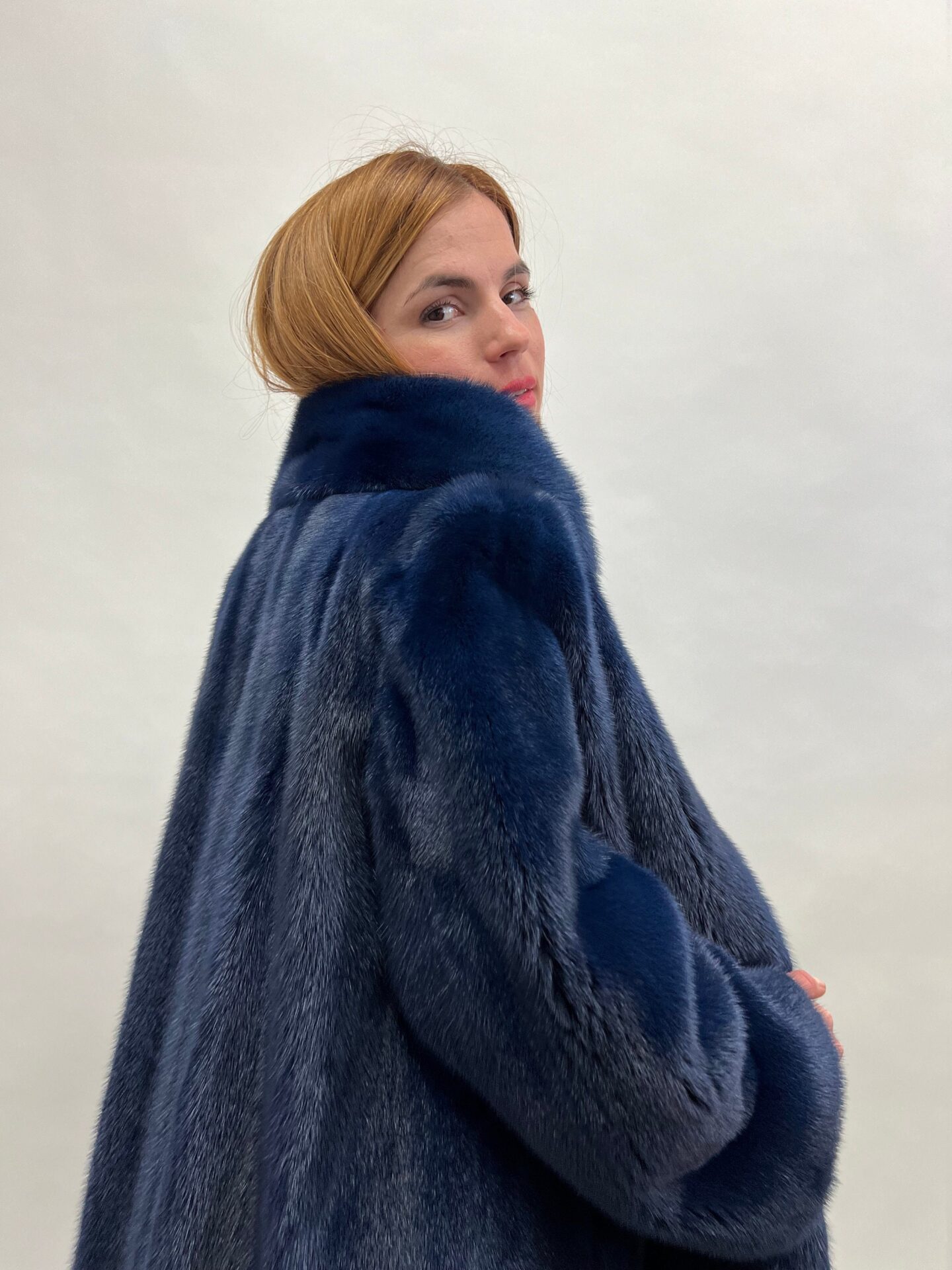 Real navy blue mink premium lavish mink fur collared coat. Beautiful Saga velvet fur let out stroller.Fur in a budget.